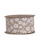 Ribon panza tip iuta imprimata cu flori albe